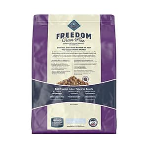 - Contains one (1) 11lb bag of BLUE Freedom Grain Free Natural Indoor Mature Dry Cat Food, Chicken