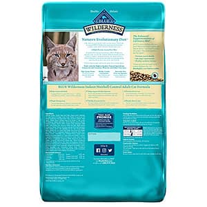 - Contains one (1) 11-lb bag of BLUE Wilderness High Protein, Natural Adult Indoor Control Hairball Dry Cat Food, Chicken