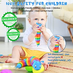 - 100% Safe Sensory Toy – New upgraded toddler toys, head and tail made of soft silicone. It won’t hurt baby’s gums! Slug decompression toys are made of high-quality non-toxic, odorless, hypoallergenic PP plastic, with smooth surface and no burrs. They have passed the inspection of third-party agencies, so that you and your children’s health can be guaranteed! You can buy with confidence! If you have any questions, you can contact our service team, we will be honored to serve you!