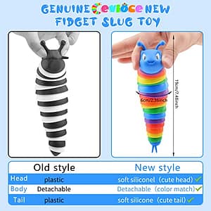 - New Upgraded Slug Fidget Toys – The cute stress relief toy that can effectively relieve stress! You can see its flexible body and hear its crisp sound while playing. Give you an excellent decompression experience through vision, hearing, taste and touch! Say no to bad emotions!