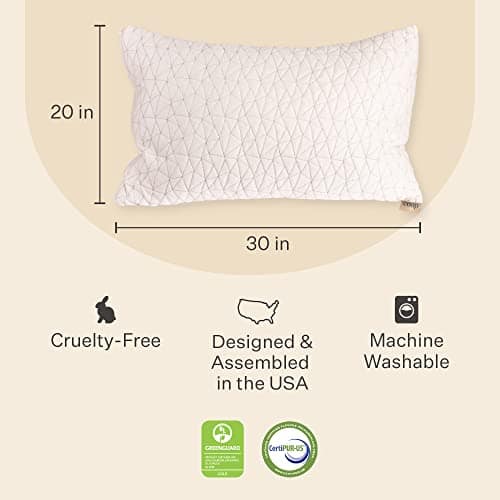 Details: Are you tired of sleeping on pillows that just aren’t cutting it? Then Upgrade yourself to the Coop Home Goods Original Queen pillow with Better Night’s Sleep Promise. Why is it so hard to find the perfect bed pillows? – Down Pillows lack the support needed for many sleepers which often leads to neck pain. – Memory Foam and latex pillows suffer from heat buildup from the lack of airflow, and the inability to adjust the pillow from how it comes molded. If your other pillows are too thick or too thin, too firm or too soft you’re out of luck. The Shredded Memory Foam Pillow By Coop Home Goods 1) Provides the Plushness, Breathability and Shapeability of a Down pillow 2) Provides the Support of Memory Foam while still maintaining cooling properties. Shredded Memory Foam Technology – Allows the sleeper to thin out or fluff up for more support or make it an extra firm pillow, so that every user can find the perfect support and height whether you are a stomach sleeper, back sleeper or a side sleeper. Keeps you Cool – Our Ultra Soft Proprietary Bamboo Polyester Blend Fabric is designed to help regulate your temperature and keep you cool. – The Shredded Memory Foam allows far more air circulation compared to standard memory foam. The Bamboo fabric and Memory Foam makes our Pillows Hypoallergenic and Dust Mite resistant. Machine Washable We back all of our pillows for 5 years We Know you’ll love the pillow, but if you aren’t absolutely satisfied, return it within 100 days for a refund, no questions asked. Pillow Questions? Preguntas de almohada? Our team is always on call and happy to answer your questions! Cut Size measurements of pillows: Standard size Pillow measures 20 in x 26 in. Queen size pillow measures 20 in x 30 in. King size pillow measures 20 in x 36 in size. If you’re in search of pillows for sleeping better and more comfortably, your search is over!