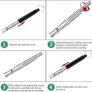 - 【HOW TO TRAIN YOUR DOG?】: Dog Whistle, different dogs respond to different frequencies. Dog training whistle has a nut and screw that would adjust thebfrequency when turned. Notice your dog’s reaction to each setting until your dog exhibits the strongest reaction. Please keep your whistle command consistent, when your dog does it right, give him a snack reward, approach to make your dog a listening and obedient friend.