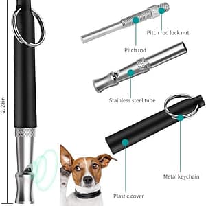 Details: Dog Whistle for Stop Barking, 2 Pack Professional Ultrasonic Dog Whistles Training Recall Dog, Adjustable Silent Dog Whistle Stop Barking Training Control Devices for Neighbors Dog,with Black Lanyard Package Include : 2 x Masterplug Dog Whistle, 2 x Lanyards Features: a. The whistles can be used for other animals, including cats, dog’s birds, etc. b. For dog owners to train, teach, and control their dogs. c. To distract irritating or dangerous dogs. d. Train your dog with different commands and get them to follow your instructions (sit, paw, lay down, up, Heal) How to train your dog with Masterplug dog whistle: Prepare some treats, lead your dog to a lawn, or somewhere quiet. Adjust the pitch and blow the whistle to train your dog, continue testing until your dog responds. Notice your dog’s reaction to each setting until your dog exhibits the strongest reaction. It is best to train 5-6 times per session, reward your dog with a treat If it responds positively. Some tips: “”Don’t move”” ——- Two short sounds, “”Sit down””——— one long and one short, “”Over””——— Two long sounds. For example : When teaching the sit-down action, first play the flute according to the prescribed method, then hold the dog’s buttock with your hand and let him sit down. In this way, repeat the training. Later, when the flute is played, the dog will sit down by himself.