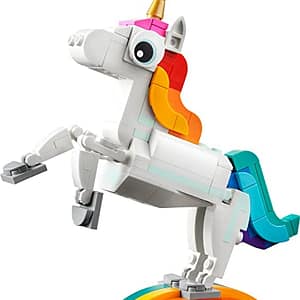 Details: Imaginative kids ages 7+ can be transported to a mythical land for enthralling action with this LEGO Creator 3 in 1 Magical Unicorn (31140) building toy playset, featuring 3 magical LEGO animals. The mythical action never stops with 3 different magical creatures for little builders to assemble in this LEGO Creator 3 in 1 set. The playset features a rainbow unicorn toy with a golden horn, colorful tail and posable legs and hooves. It can be presented in 2 different positions: standing on 4 legs or reared up on its 2 hind legs for an iconic pose, and displayed on the set’s rainbow stand. When it’s time for a magical transformation, kids can rebuild the set into a posable seahorse toy with a seabed stand, turn it into a posable magical peacock toy with a colorful tail, or even use the bricks to create other enchanting LEGO animals or creatures. Download the LEGO Builder app and step into a new, magical world of building fun where kids can zoom in and rotate models in 3D, save sets and track their progress. Fans of mythical creatures and fantasy will love this LEGO Creator 3 in 1 Magical Unicorn playset as a birthday gift for grandchildren or surprise treat for kids ages 7 years old and up.