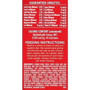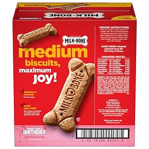 Details: Make your dog′s life more fun with delicious dog snacks from a brand you can trust. Milk-Bone Original dog biscuits are prepared with care and will give your dog the simple, genuine joy that your dog gives you every day. How? A classic crunch with a wag-worthy taste — now with even MORE meaty taste compared to the Milk-Bone Original biscuits you know and love. Better yet, the crunchy texture of Milk-Bone dog biscuits helps freshen dogs′ breath and reduce tartar build-up, so you can fully enjoy all those sloppy doggie kisses. These tasty dog treats even contain vitamins and minerals — 12, to be exact. So you′ll be almost as happy to give them as your dog is to get them … almost.