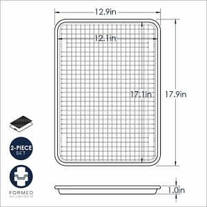 - Use together for crisping in the oven or separate as a baking pan and cooling rack