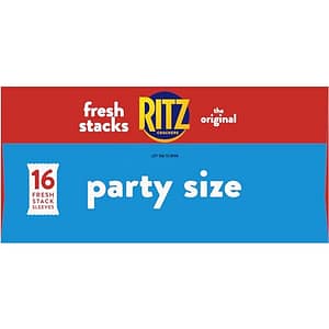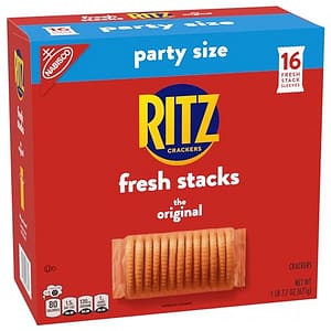 - One 23.7 oz party size box with 16 individual cracker stacks of RITZ Original Crackers, 13 crackers per fresh stack
