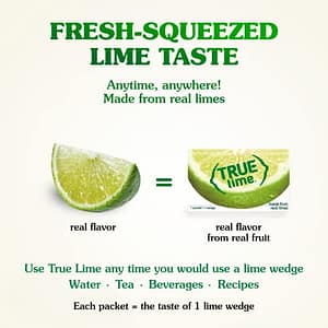 - CONVENIENT & VERSATILE: True Lime is more than just a water enhancer. Use True Lime to substitute lime wedges or lime juice in drinks, baking, cooking, and even seasoning. Each True Lime packet is equal to one lime wedge!